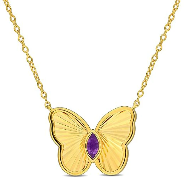 Julianna B Yellow Plated Sterling Silver Amethyst Butterfly 17" Pendant