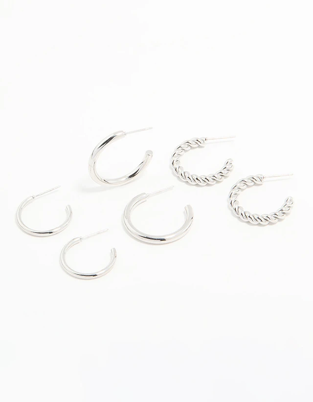 Waterproof Stainless Steel Twisted & Smooth Hoop Earrings 3-Pack