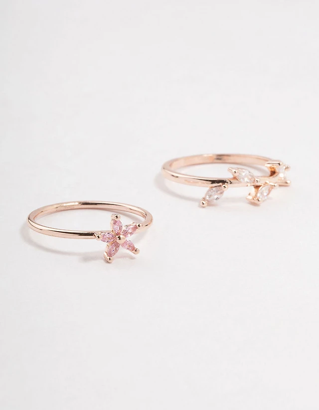 Gold Plated Cubic Zirconia Flower Stacked Ring