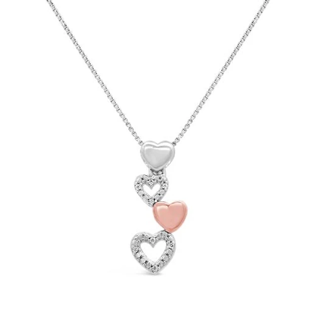Loving Hearts Diamond Mom and Child Heart Pendant in Sterling Silver