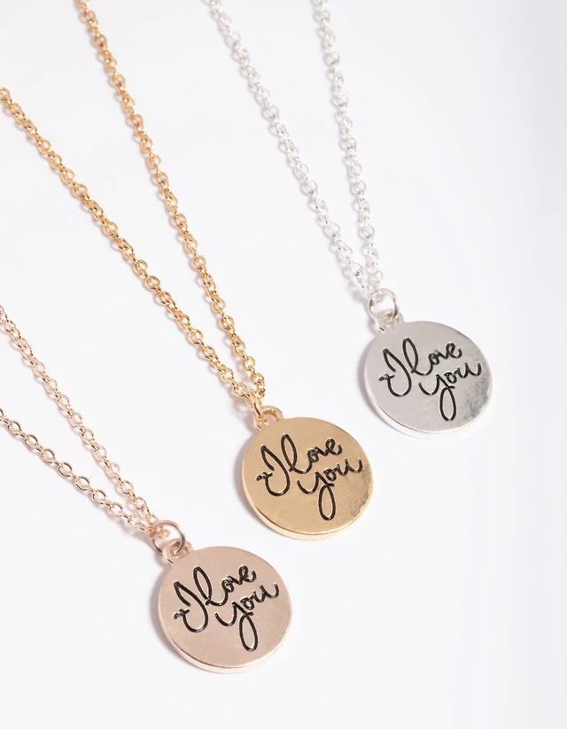 Mixed Metal BFF Diamante Heart Necklace Pack