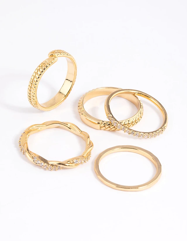 Gold Plated Cubic Zirconia Chain Ring Pack