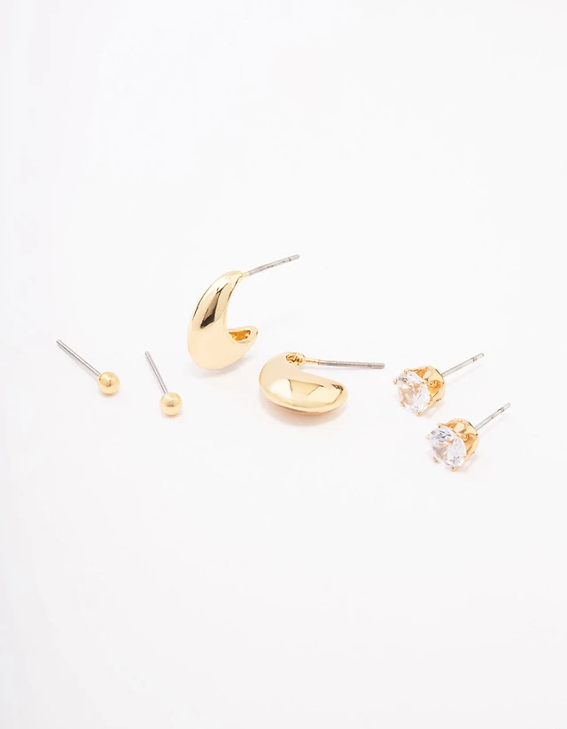 Silver Plated Brass Cubic Zirconia Statement Huggie Earrings Pack