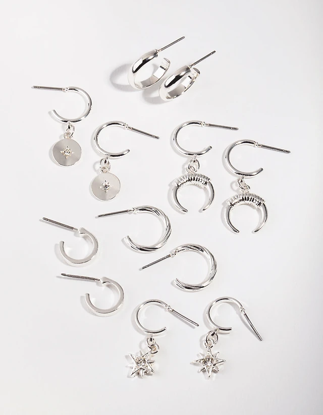 Silver Star & Moon 6-Pack Hoop Earring
