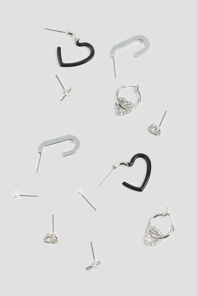 Half Hoop Stud Earrings with Cubic Zirconia in Sterling Silver