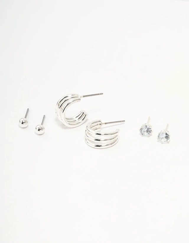 Ardene Man 3-Pack Stainless Steel Hoop & Stud Earrings For Men in Silver