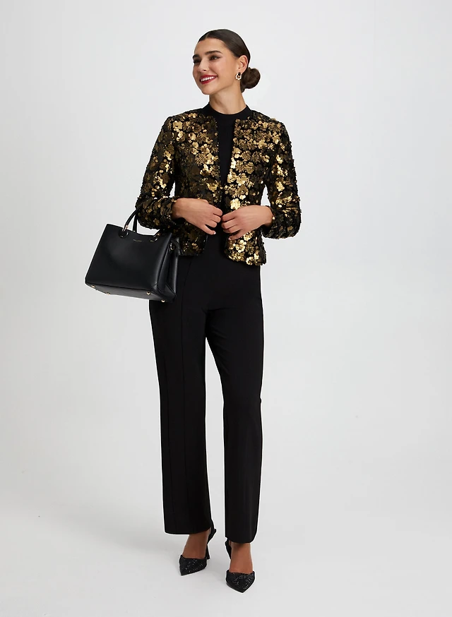 Sequin Jacket, Sleeveless Sweater & Side Zip Pants
