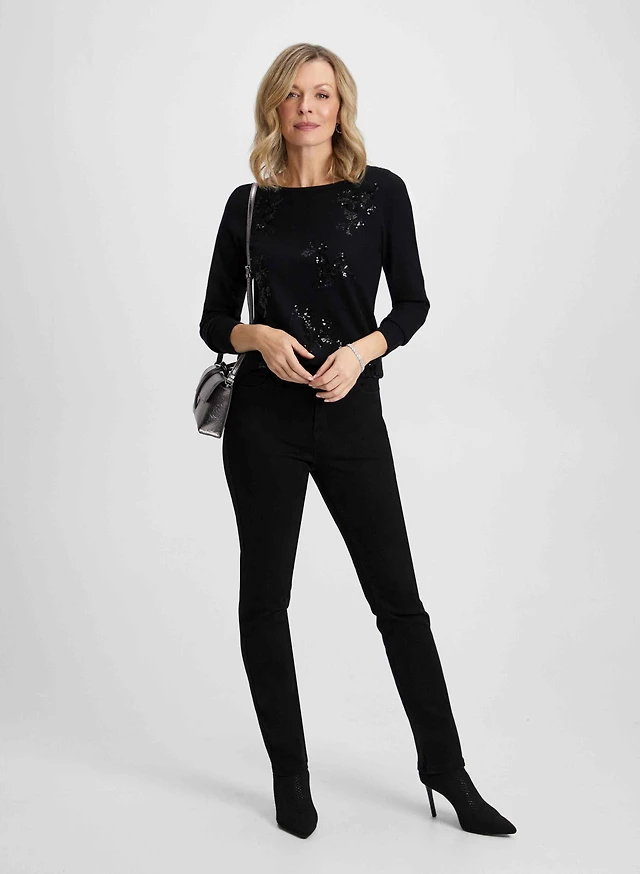 Rhinestone Detail Sweater & Slim Leg Jeans