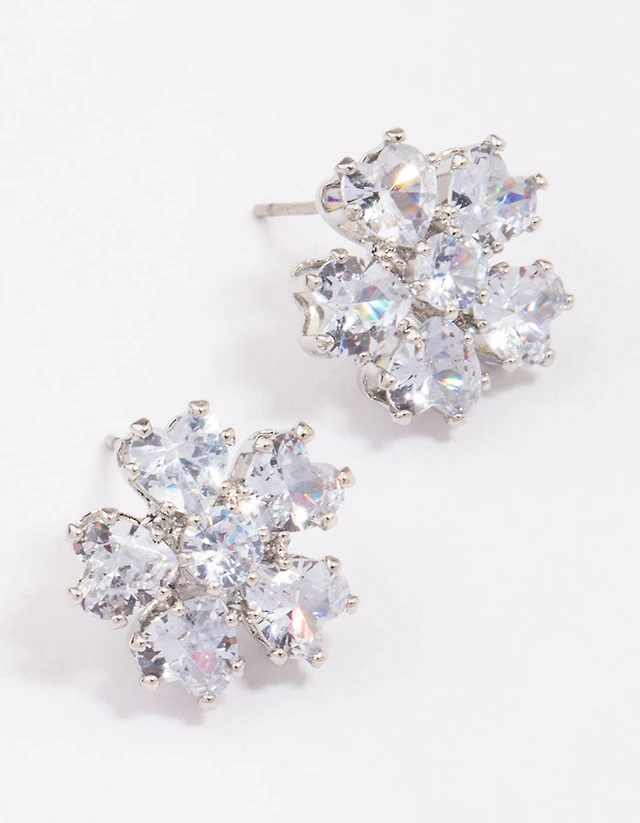 Sterling Silver Cubic Zirconia Flower Stud Earrings