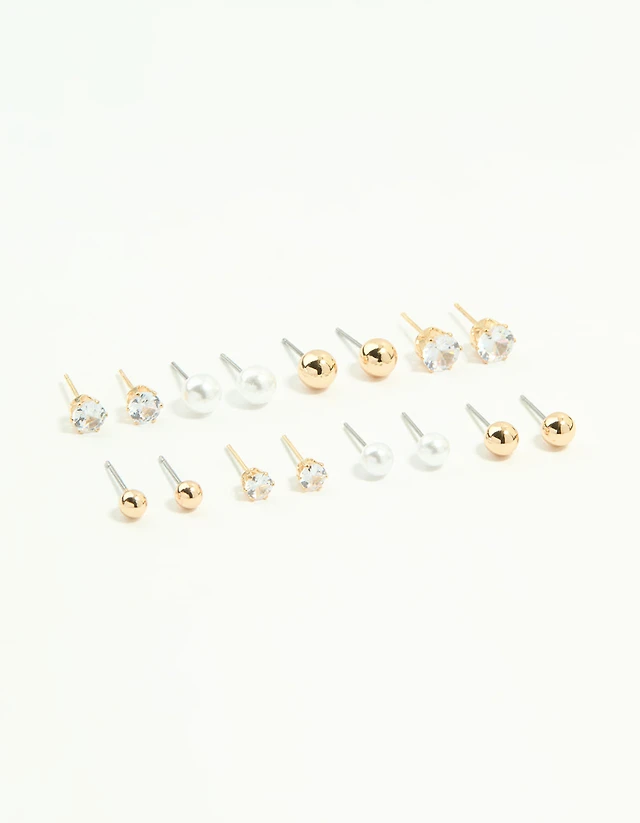 Gold Pearl, Diamante & Butterfly Stud Earrings 8-Pack