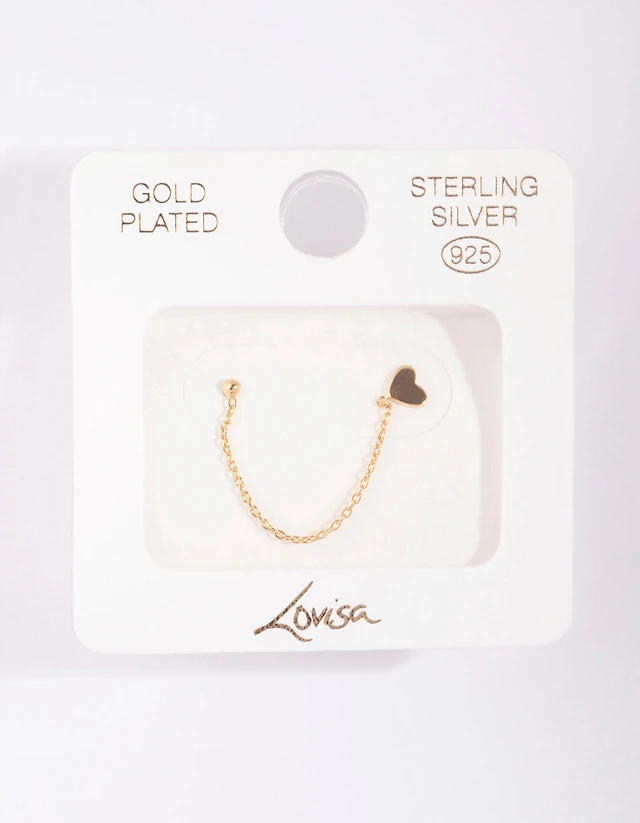 Gold Plated Sterling Silver Heart Chain Double Stud Earring