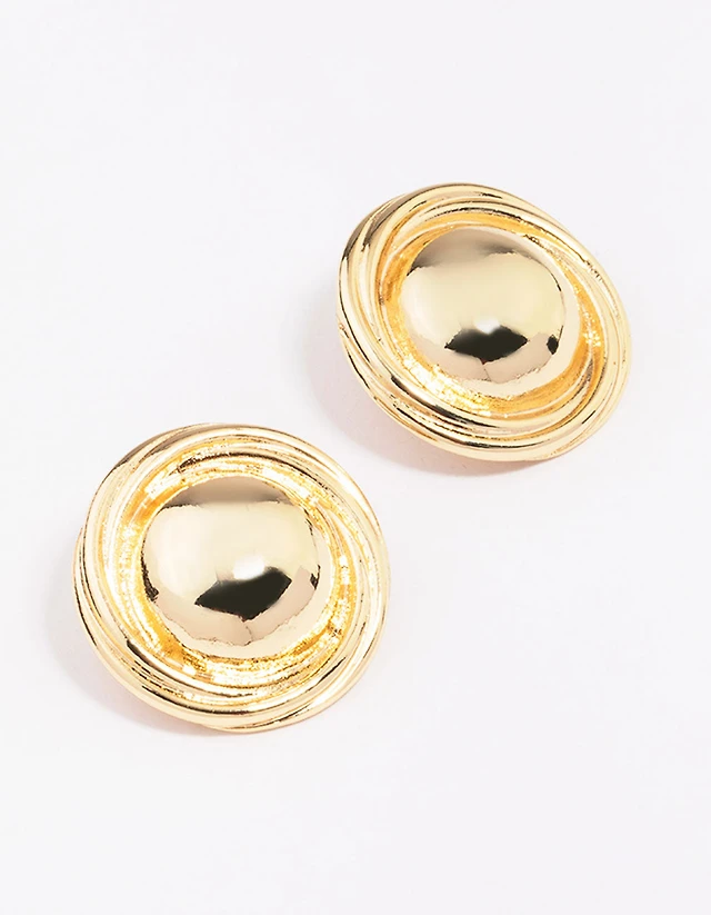 Gold Plated Large Round Twisted Stud Earrings
