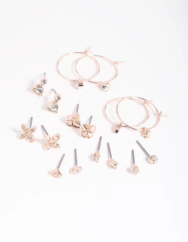 Rose Gold Basic Diamante Stud Earrings 8-Pack