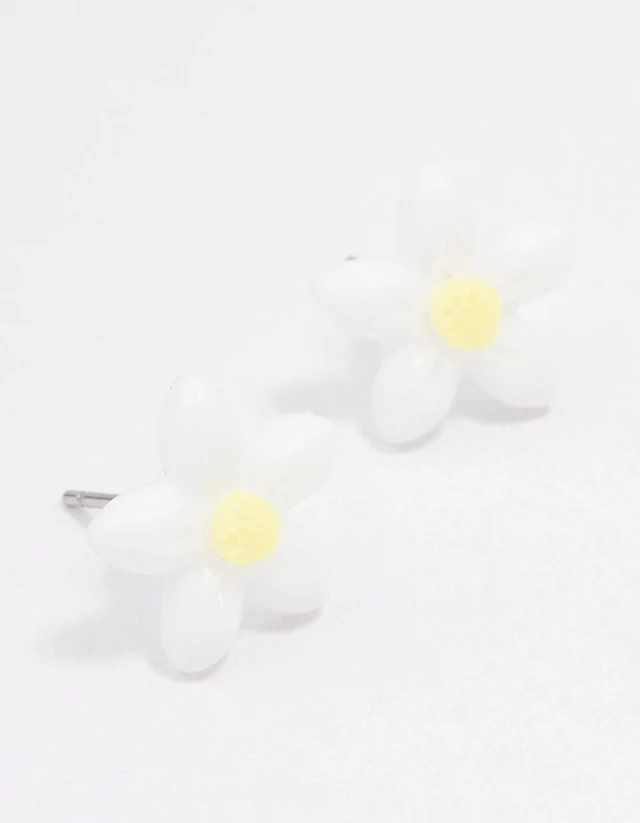 White Daisy Stud Earrings