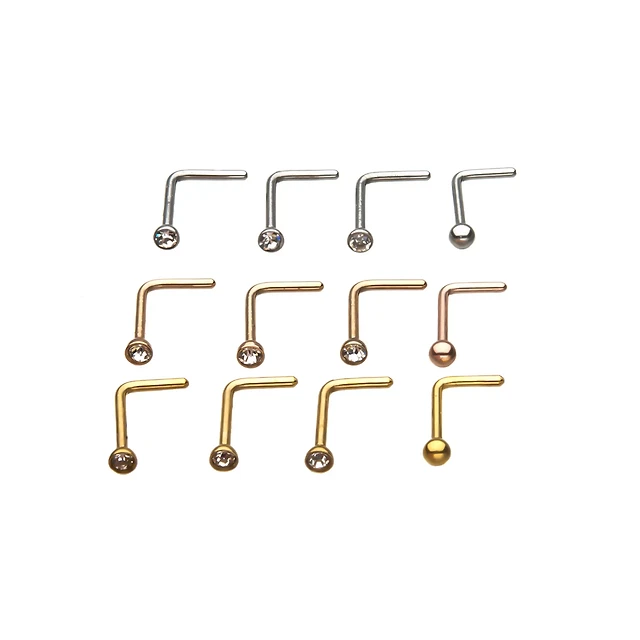 Multi-Pack CZ L-Bend Nose Rings 12 Pack - 20 Gauge