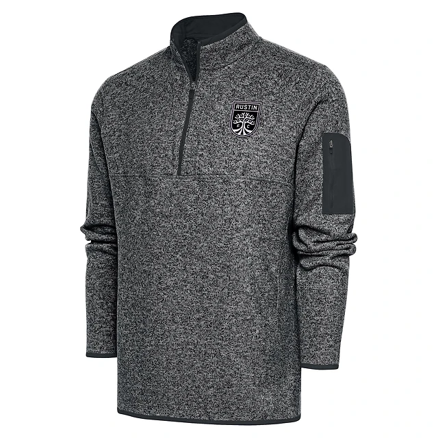 Men's Antigua Heather Charcoal Austin FC Brushed Metallic Logo Fortune Quarter-Zip Pullover Jacket