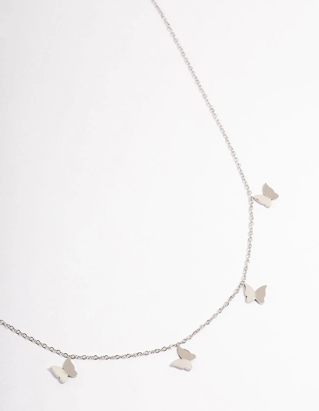 Waterproof Stainless Steel Cubic Zirconia Butterfly Necklace