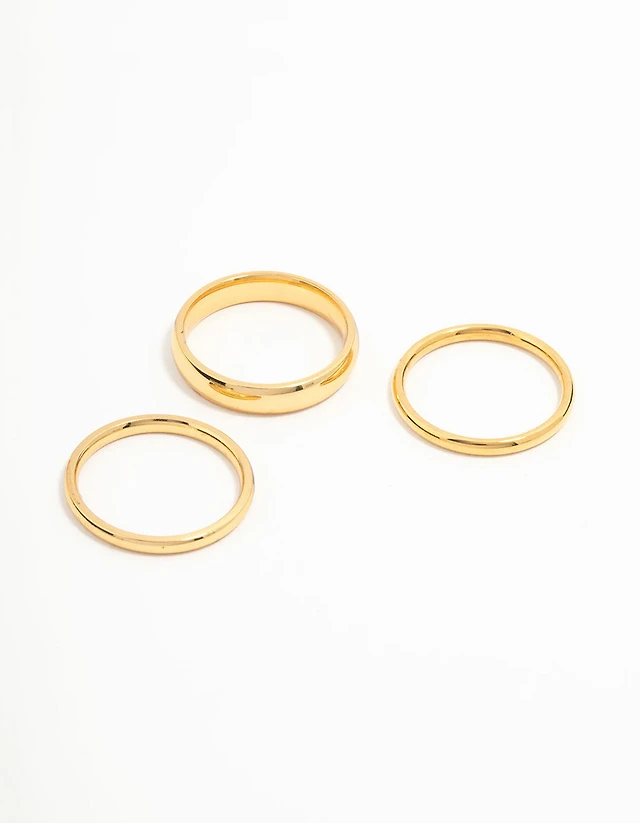 Waterproof Gold Plated Stainless Steel Band Rings 3-Pack