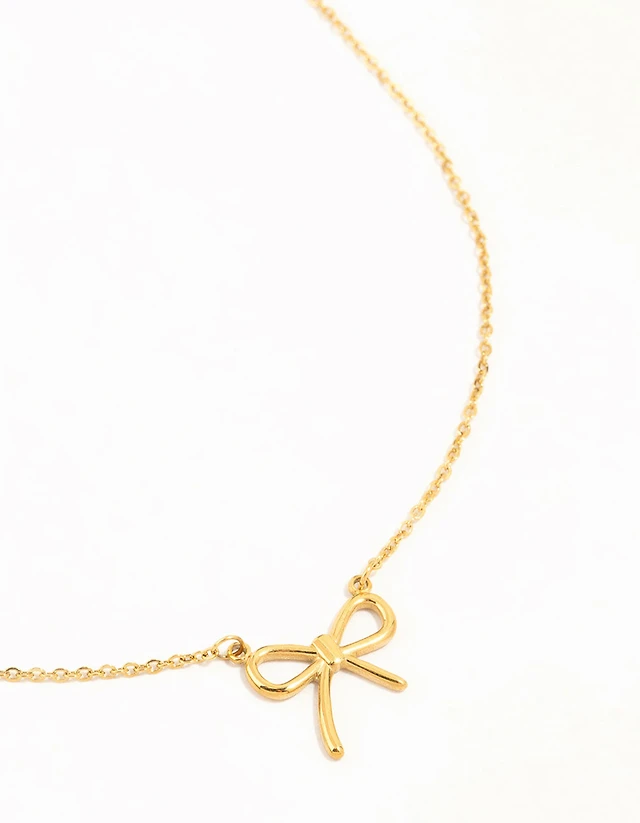 Waterproof Gold Plated Stainless Steel Plain Bow Necklace