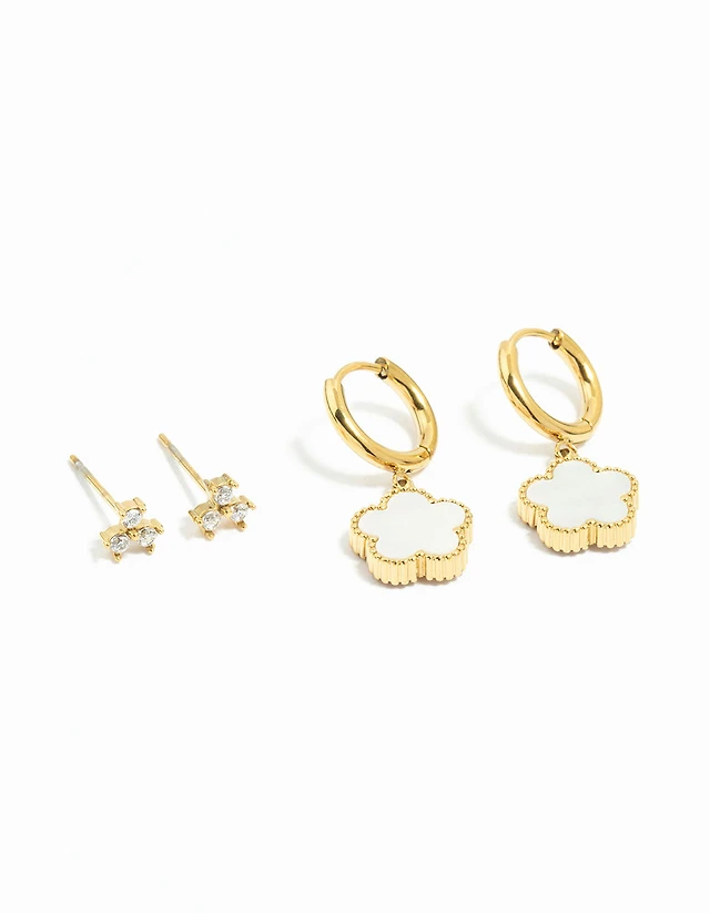 Waterproof Gold Plated Stainless Steel Cubic Zirconia & Sleek Huggie Earrings 3-Pack