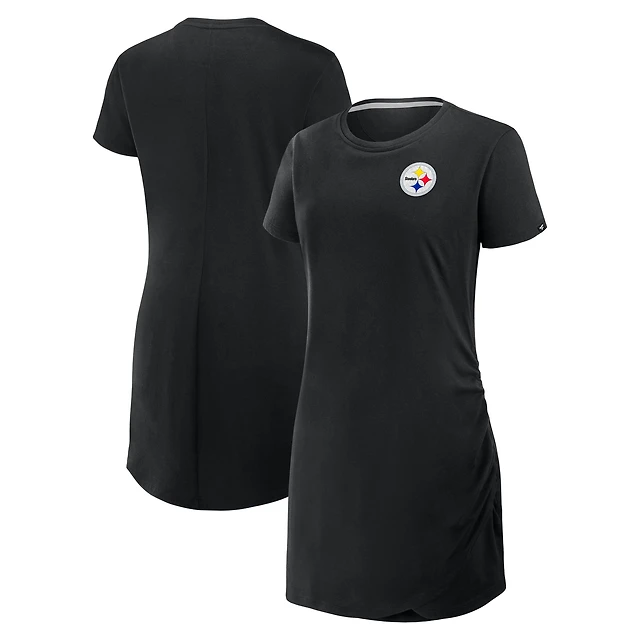 Women's Fanatics Black Pittsburgh Steelers Ruched Drape T-Shirt Dress