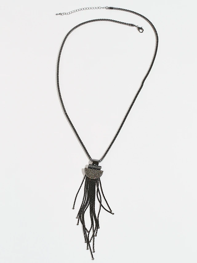 Long Hemi Art Deco Necklace with Fringe Pendant