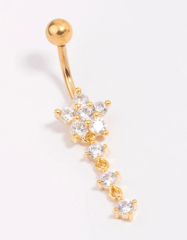 Gold Plated Titanium Cubic Zirconia Flower Belly Bar