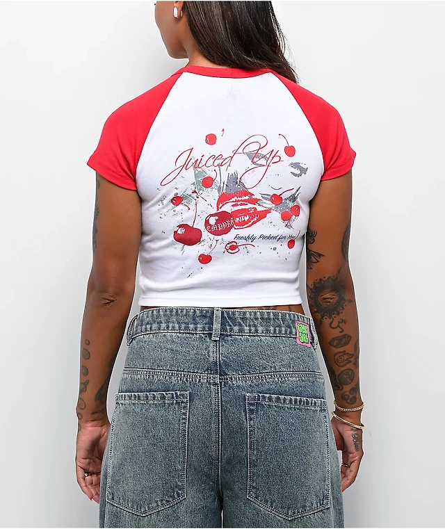 Empyre Cherry Lovin' Red & White Raglan Crop T-Shirt