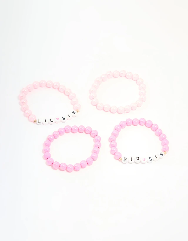 Kids Pink Beaded Little Sis Big Sis Bracelets 4-Pack
