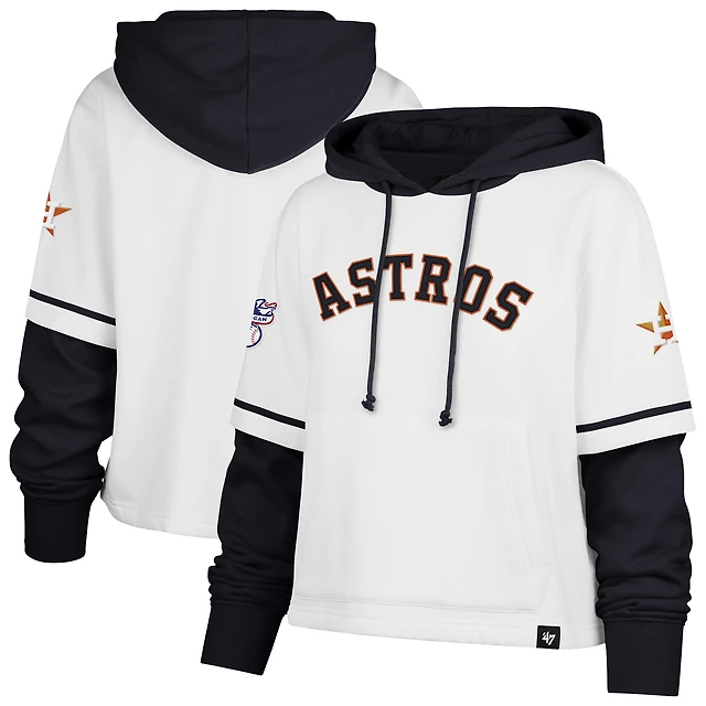 Women's '47 White Houston Astros Trifecta Shortstop Cropped Pullover Hoodie