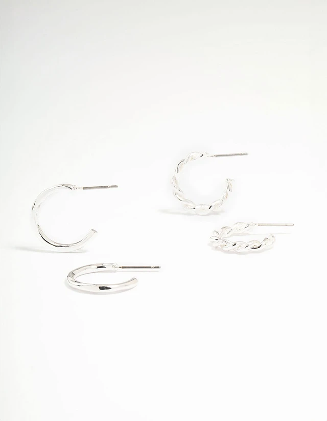 Sterling Silver Diamante Stud & Hoop Earring Pack