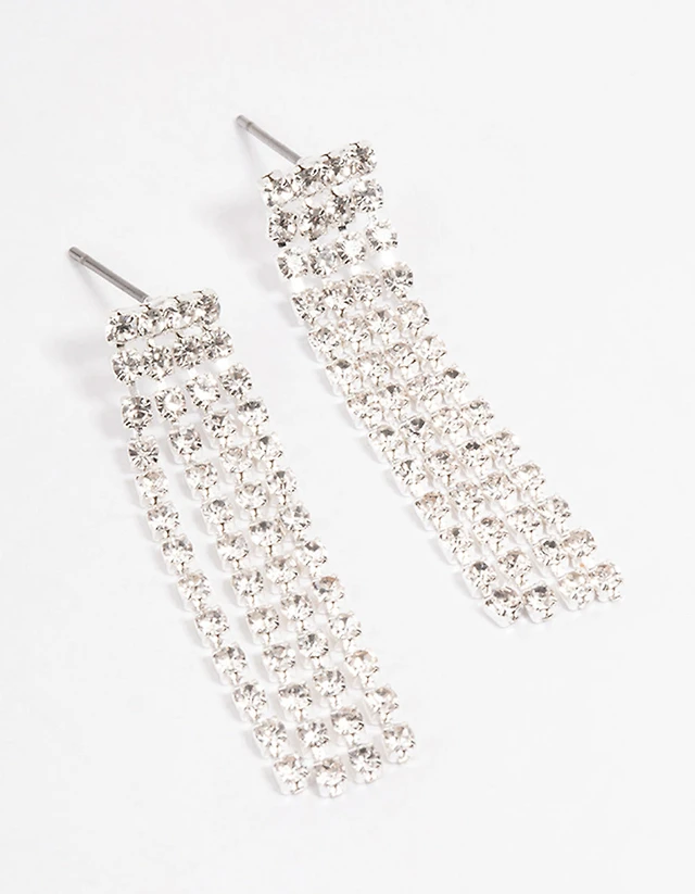 Silver Four Diamante Cup Chain Drop Earrings