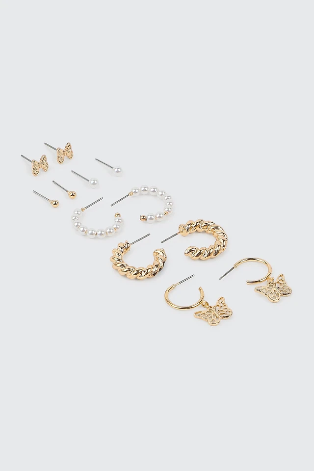 Ardene 6-Pack Pearl & Butterfly Earrings in Gold | Stainless Steel