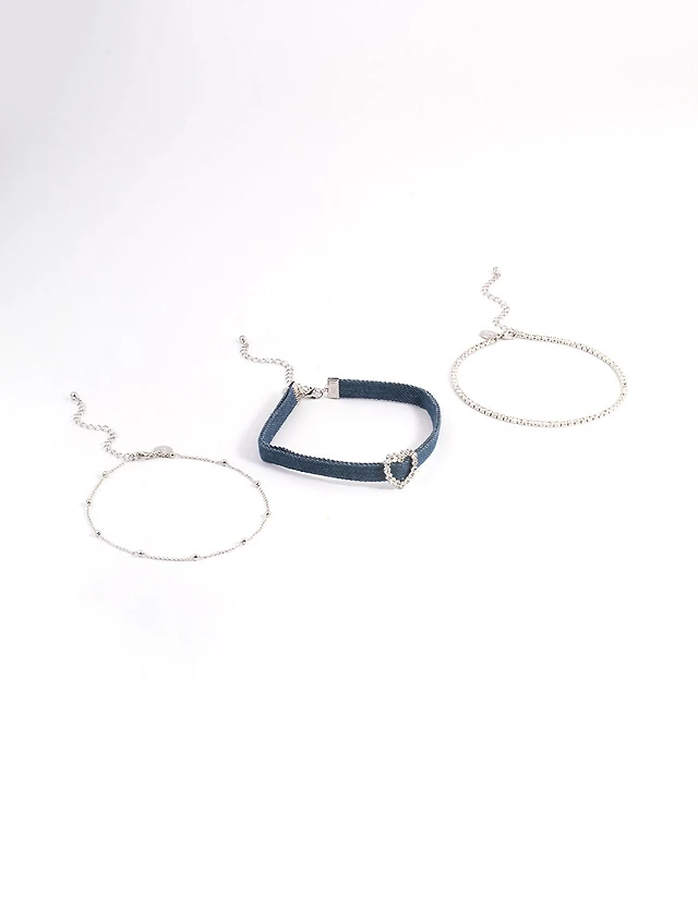 Silver Plated Fine Triple Layered Beaded Disc Necklace