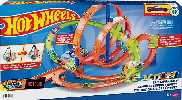 Hot Wheels Action 4-Loop Crash Out Track Set with Motorized Booster & 1:64 Scale Toy Car