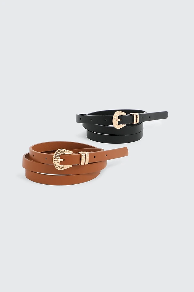 Ardene 2-Pack Hammered Buckle Belts in Cognac | Size | Faux Leather