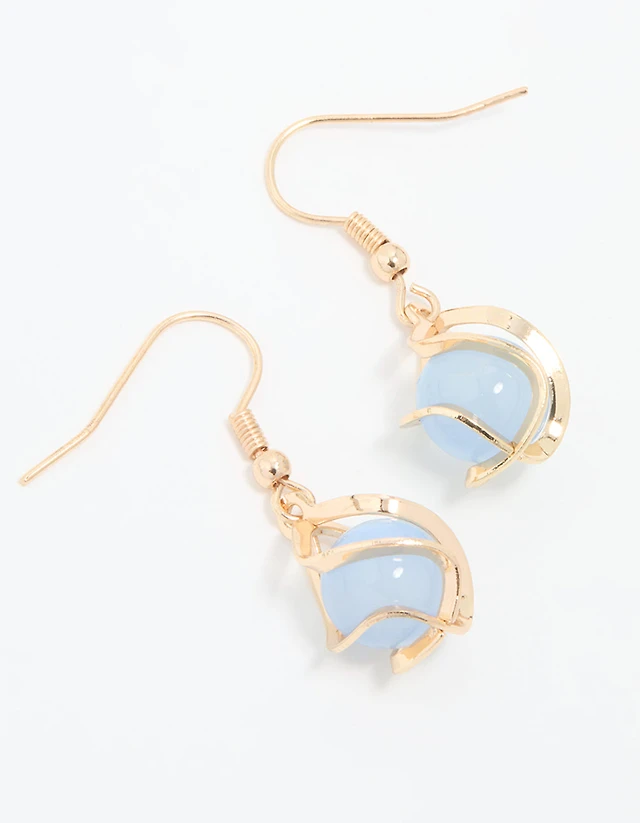 Gold Peach Acrylic Flower Beaded Hoop Earrings