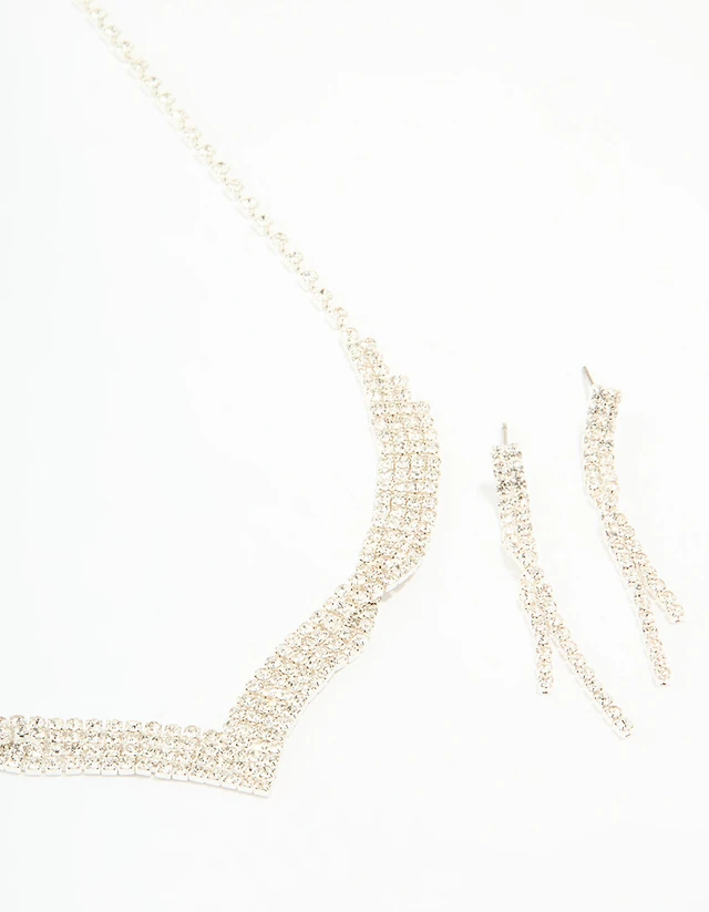 Diamond Accent Square Frame Pendant and Stud Earrings Set in Sterling Silver