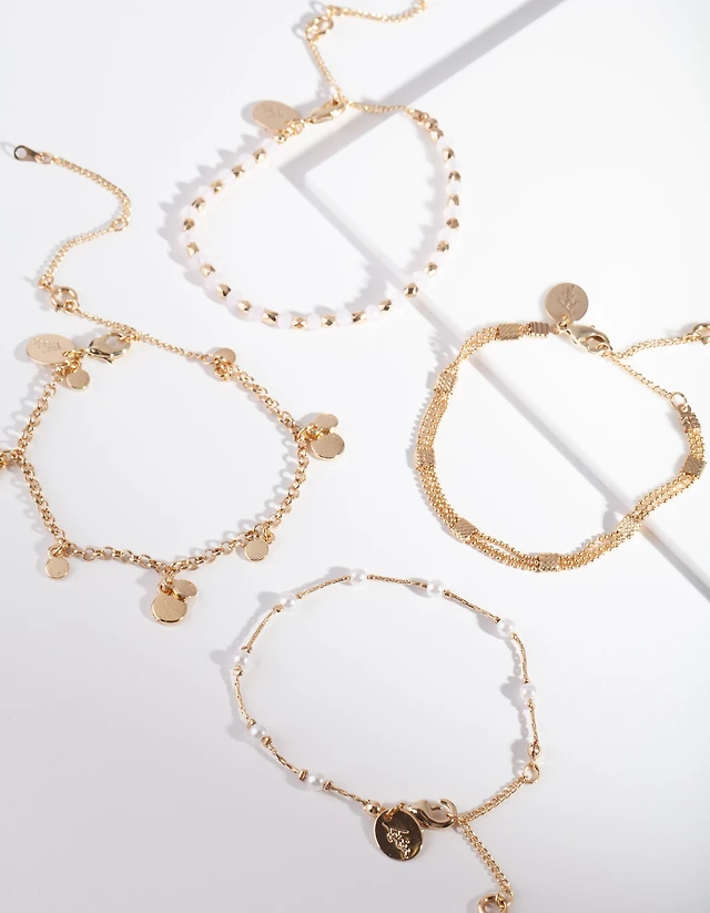 Waterproof Gold Plated Stainless Steel Pearl & Beaded Balls Layered Bracelet
