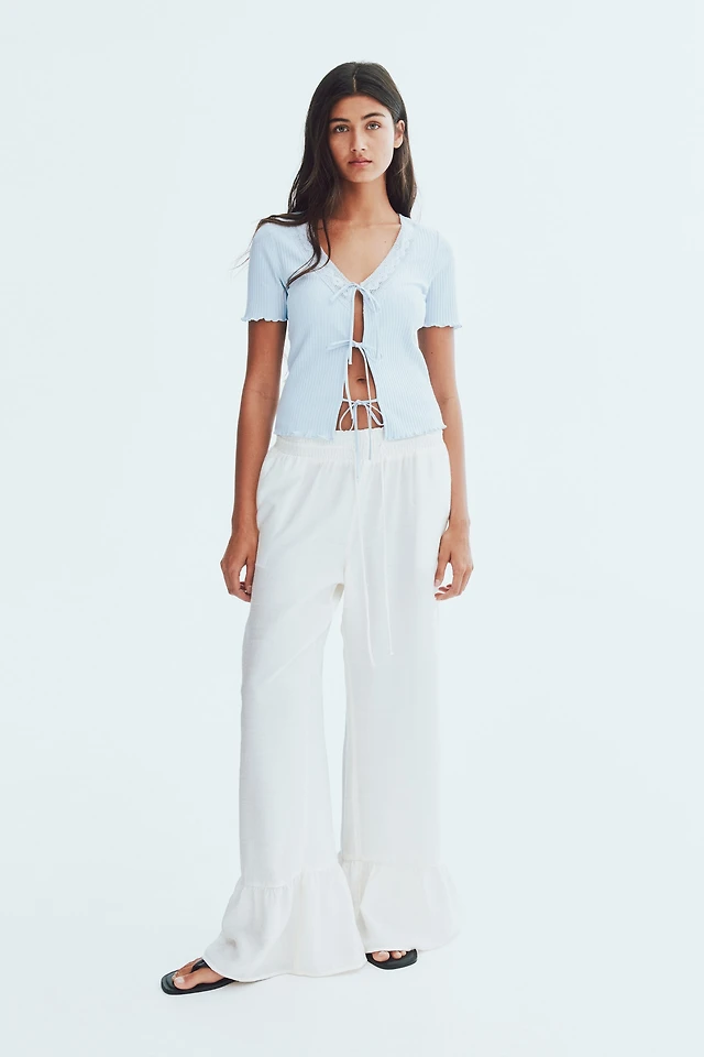 Pointelle Long Sleeve Tie-Front Top