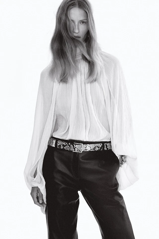 Chiffon Self-Tie Long Sleeve Flyaway Top