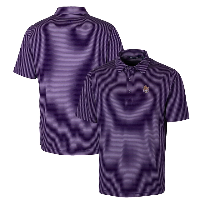Men's Cutter & Buck Purple LSU Tigers Forge Pencil Stripe Stretch Polo
