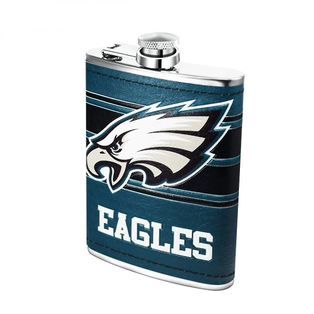 NFL 8 oz SS Flask + Funnel Set PU Wrap With Embossed Logo Eagles