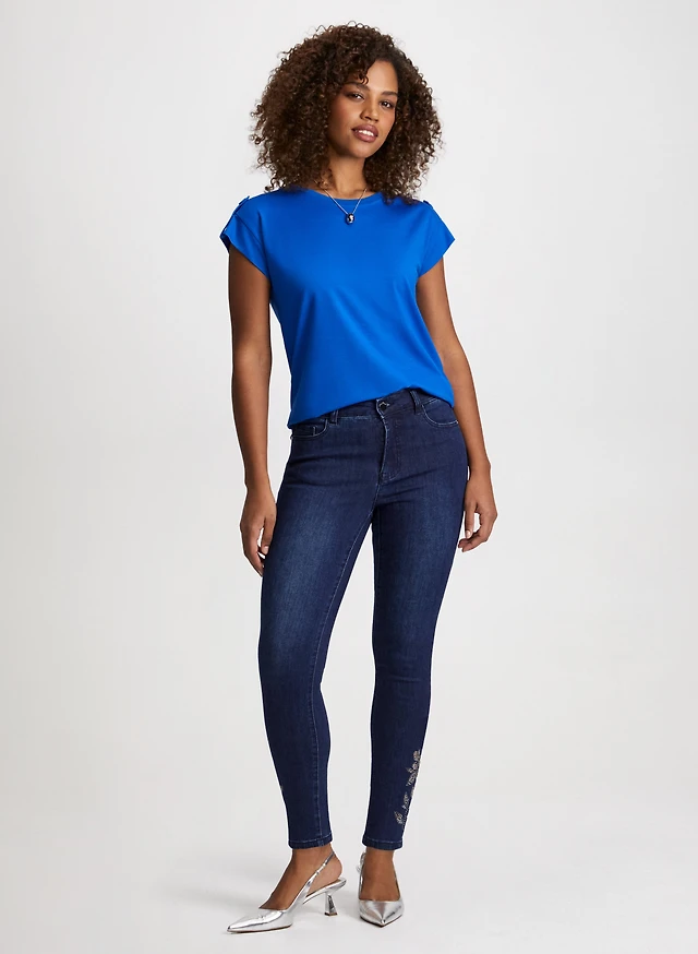 Cap Sleeve Tee & Embellished Hem Jeans