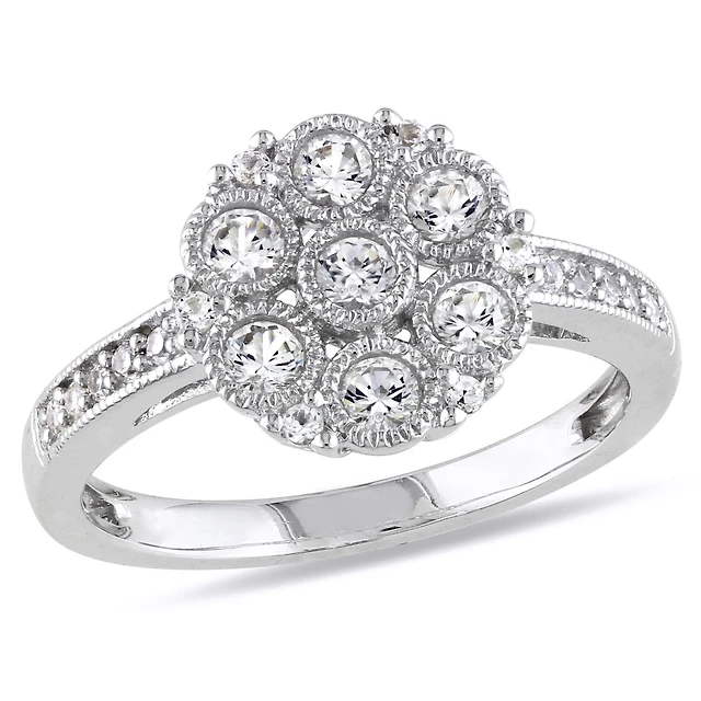 White Sapphire and Diamond Accent Engagement Ring Sterling Silver