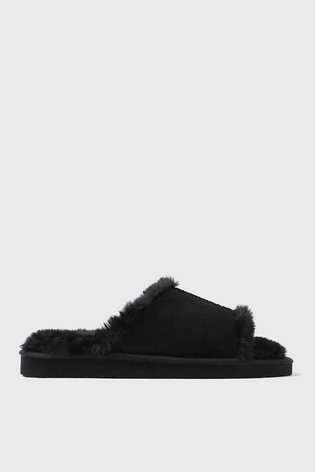 Ardene Open Toe Faux Suede Slippers in Black | Size | Eco-Conscious