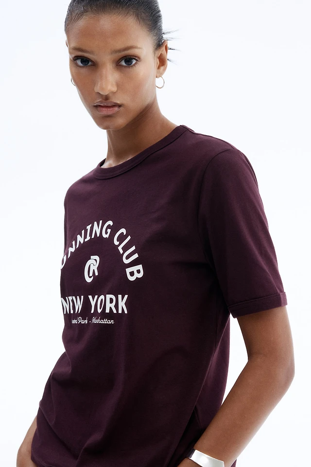Ardene Short Graphic T-Shirt in Burgundy | Size | 100% Cotton