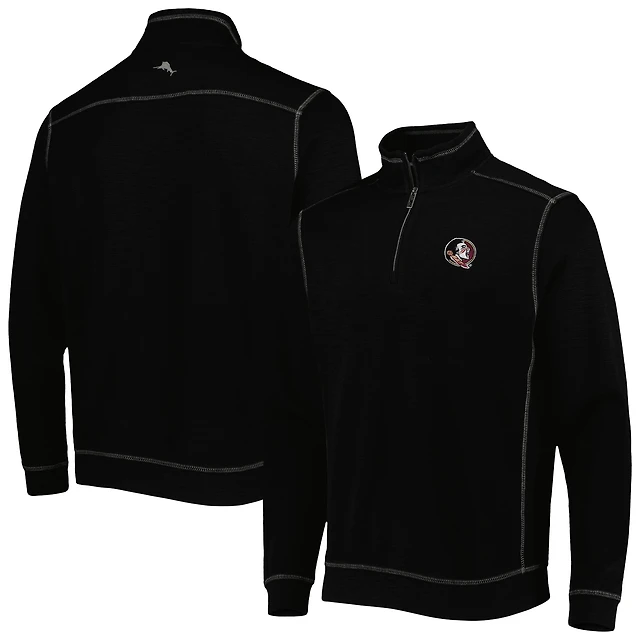 Men's Tommy Bahama Black Florida State Seminoles Sport Tobago Bay Tri-Blend Mock Neck Half-Zip Jacket