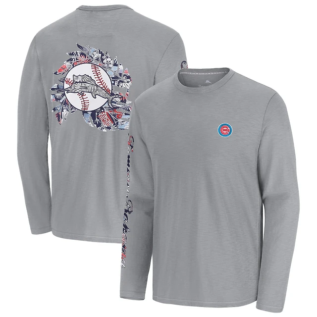 Men's Tommy Bahama Gray Chicago Cubs Tropic Curveball Lux Long Sleeve T-Shirt