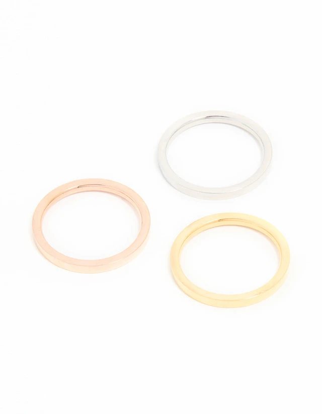 Waterproof Mixed Plated Stainless Steel Stacking Rings 3-Pack